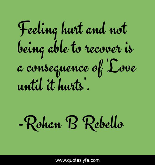 This page presents the quote "Feeling hurt and not being able to recover is a consequence of 'Love until it hurts'.". Author of this quote is Rohan B Rebello. This quote is about love, affection, hurt,.