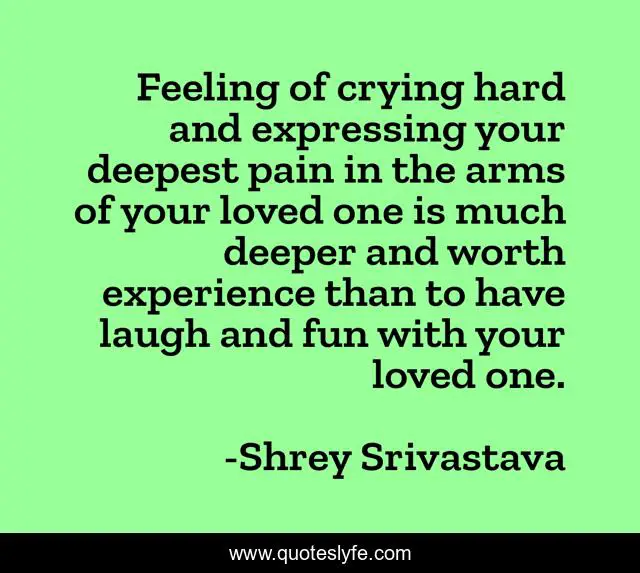 This page presents the quote "Feeling of crying hard and expressing your deepest pain in the arms of your loved one is much deeper and worth experience than to have laugh and fun with your loved one.". Author of this quote is Shrey Srivastava. .