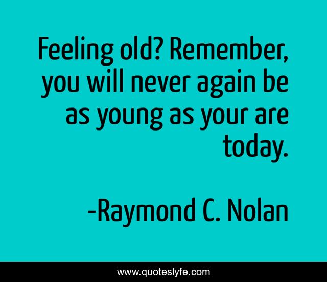 "Raymond C. Nolan Quotes." Quoteslyfe.com, 2025. Fri. 05 Dec. 2025. <https://www.quoteslyfe.com/quote/Feeling-old-Remember-you-will-never-again-217285>.