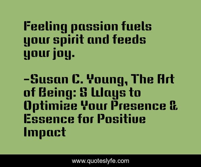 "Susan C. Young, The Art of Being: 8 Ways to Optimize Your Presence & Essence for Positive Impact Quotes." Quoteslyfe.com, 2025. Tue. 09 Dec. 2025. <https://www.quoteslyfe.com/quote/Feeling-passion-fuels-your-spirit-and-feeds-92372>.