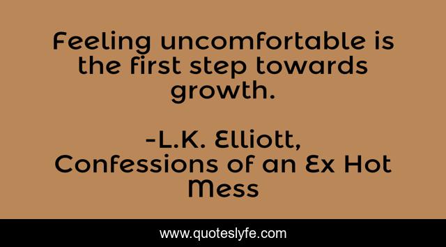 This page presents the quote "Feeling uncomfortable is the first step towards growth.". Author of this quote is L.K. Elliott, Confessions of an Ex Hot Mess. This quote is about confidence, positive, motivational, improvement, growth, optimistic, inspirational, self-help, enthusiasm,.