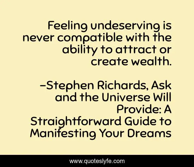 "Stephen Richards, Ask and the Universe Will Provide: A Straightforward Guide to Manifesting Your Dreams Quotes." Quoteslyfe.com, 2025. Wed. 24 Dec. 2025. <https://www.quoteslyfe.com/quote/Feeling-undeserving-is-never-compatible-with-the-44754>.