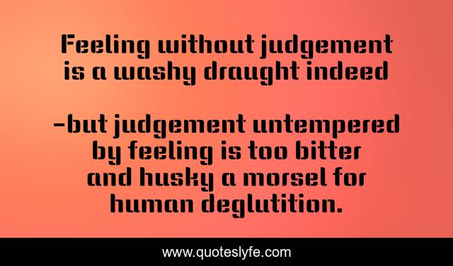 "but judgement untempered by feeling is too bitter and husky a morsel for human deglutition. Quotes." Quoteslyfe.com, 2025. Mon. 08 Dec. 2025. <https://www.quoteslyfe.com/quote/Feeling-without-judgement-is-a-washy-draught-216545>.