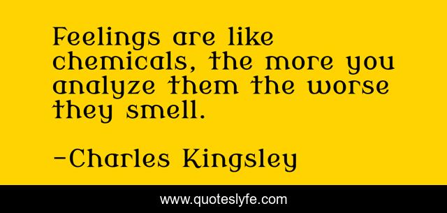This page presents the quote "Feelings are like chemicals, the more you analyze them the worse they smell.". Author of this quote is Charles Kingsley. This quote is about humor, analysis, feelings,.