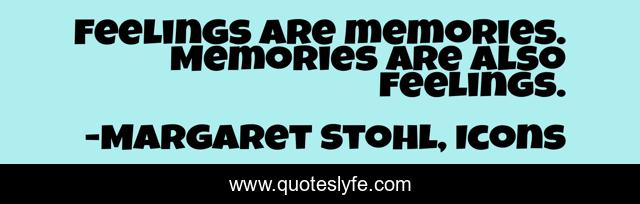 This page presents the quote "Feelings are memories. Memories are also feelings.". Author of this quote is Margaret Stohl, Icons. This quote is about memories, feelings,.
