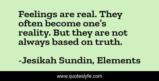 "Jesikah Sundin, Elements Quotes." Quoteslyfe.com, 2025. Mon. 08 Dec. 2025. <https://www.quoteslyfe.com/quote/Feelings-are-real-They-often-become-one-93937>.