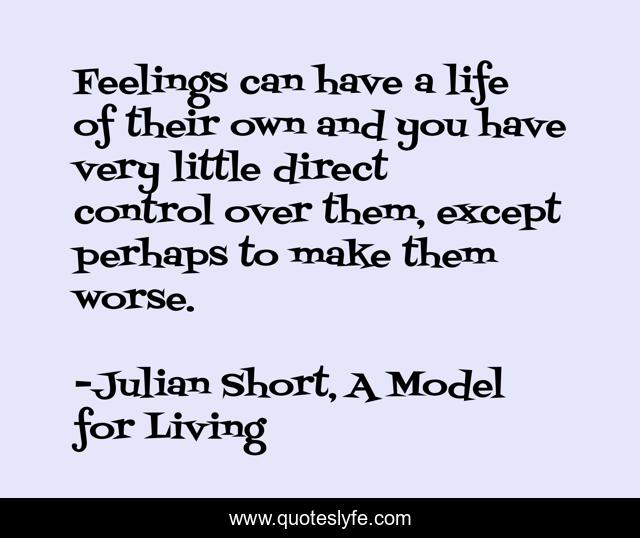 This page presents the quote "Feelings can have a life of their own and you have very little direct control over them, except perhaps to make them worse.". Author of this quote is Julian Short, A Model for Living. .