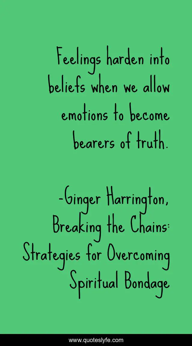"Ginger Harrington, Breaking the Chains: Strategies for Overcoming Spiritual Bondage Quotes." Quoteslyfe.com, 2025. Fri. 05 Dec. 2025. <https://www.quoteslyfe.com/quote/Feelings-harden-into-beliefs-when-we-allow-172011>.