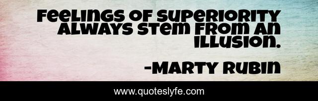 This page presents the quote "Feelings of superiority always stem from an illusion.". Author of this quote is Marty Rubin. This quote is about elitism, arrogance, superiority, megalomania, hubris, illusion,.