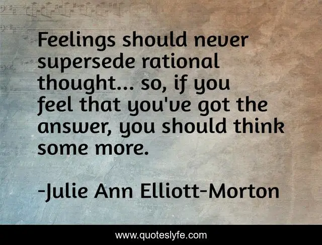 "Julie Ann Elliott-Morton Quotes." Quoteslyfe.com, 2025. Mon. 08 Dec. 2025. <https://www.quoteslyfe.com/quote/Feelings-should-never-supersede-rational-thought-so-162258>.