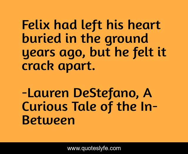 This page presents the quote "Felix had left his heart buried in the ground years ago, but he felt it crack apart.". Author of this quote is Lauren DeStefano, A Curious Tale of the In-Between. This quote is about poetic-prose, poetic, friendship, children, sad,.