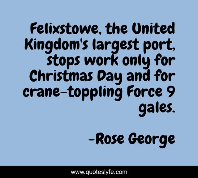 This page presents the quote "Felixstowe, the United Kingdom's largest port, stops work only for Christmas Day and for crane-toppling Force 9 gales.". Author of this quote is Rose George. This quote is about work, day, port,.