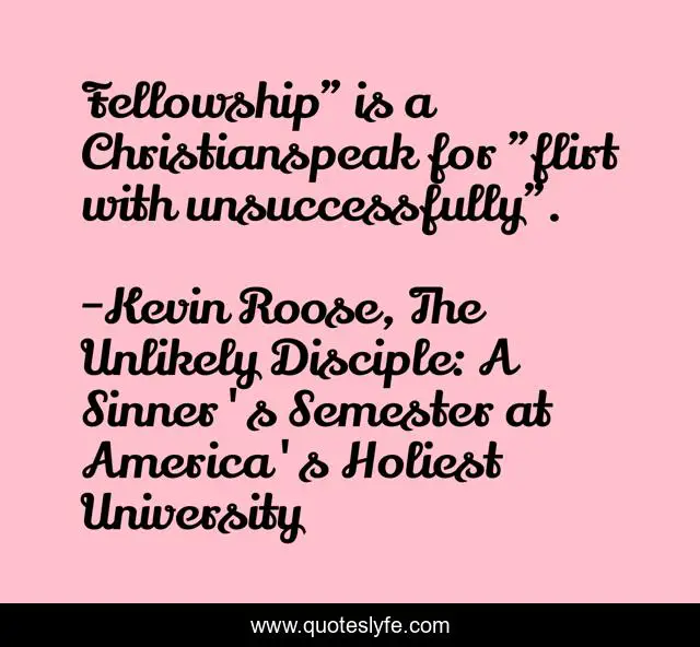 "Kevin Roose, The Unlikely Disciple: A Sinner's Semester at America's Holiest University Quotes." Quoteslyfe.com, 2025. Sun. 07 Dec. 2025. <https://www.quoteslyfe.com/quote/Fellowship-is-a-Christianspeak-for-flirt-with-204024>.