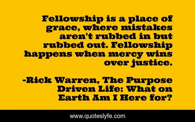 "Rick Warren, The Purpose Driven Life: What on Earth Am I Here for? Quotes." Quoteslyfe.com, 2025. Fri. 05 Dec. 2025. <https://www.quoteslyfe.com/quote/Fellowship-is-a-place-of-grace-where-84397>.