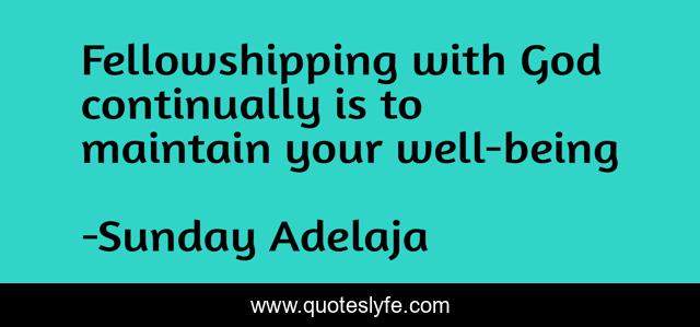 This page presents the quote "Fellowshipping with God continually is to maintain your well-being". Author of this quote is Sunday Adelaja. This quote is about fellowship-with-christ, destiny, truth, way-of-life,.