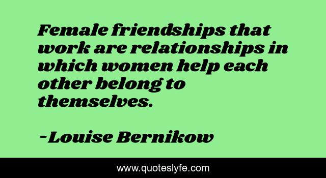 This page presents the quote "Female friendships that work are relationships in which women help each other belong to themselves.". Author of this quote is Louise Bernikow. This quote is about friendship, feminism,.