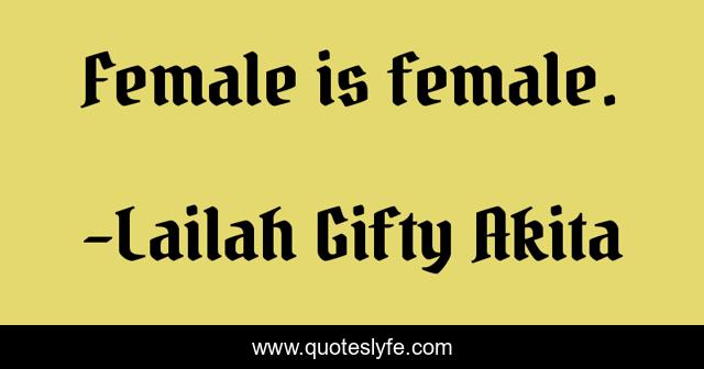 "Lailah Gifty Akita Quotes." Quoteslyfe.com, 2025. Tue. 09 Dec. 2025. <https://www.quoteslyfe.com/quote/Female-is-female-147140>.