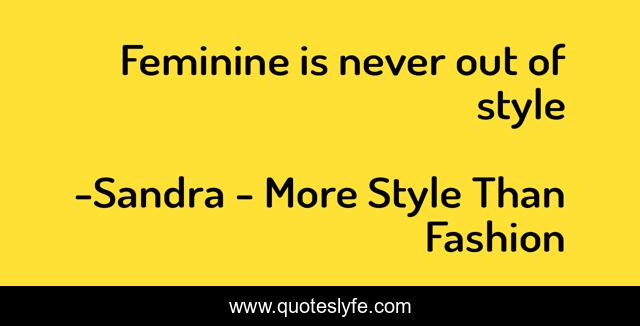 "Sandra - More Style Than Fashion Quotes." Quoteslyfe.com, 2025. Mon. 08 Dec. 2025. <https://www.quoteslyfe.com/quote/Feminine-is-never-out-of-style-234475>.