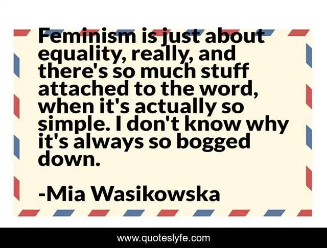 This page presents the quote "Feminism is just about equality, really, and there's so much stuff attached to the word, when it's actually so simple. I don't know why it's always so bogged down.". Author of this quote is Mia Wasikowska. This quote is about simple, why,.