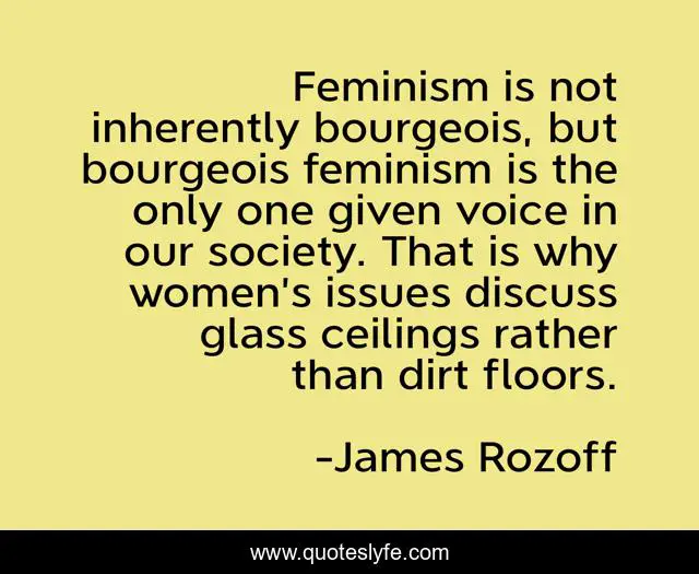 This page presents the quote "Feminism is not inherently bourgeois, but bourgeois feminism is the only one given voice in our society. That is why women’s issues discuss glass ceilings rather than dirt floors.". Author of this quote is James Rozoff. .