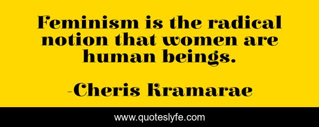 This page presents the quote "Feminism is the radical notion that women are human beings.". Author of this quote is Cheris Kramarae. This quote is about feminism, women,.