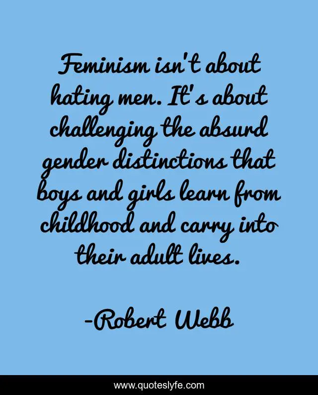 "Robert Webb Quotes." Quoteslyfe.com, 2025. Fri. 05 Dec. 2025. <https://www.quoteslyfe.com/quote/Feminism-isn-t-about-hating-men-It-326490>.