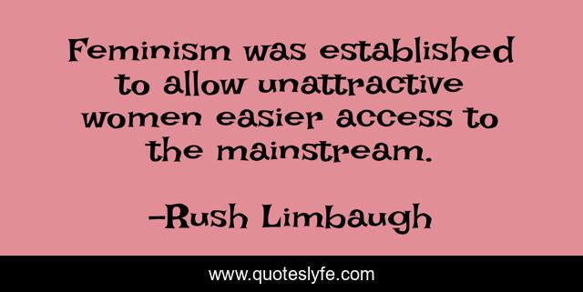 This page presents the quote "Feminism was established to allow unattractive women easier access to the mainstream.". Author of this quote is Rush Limbaugh. This quote is about access, easier, feminism,.