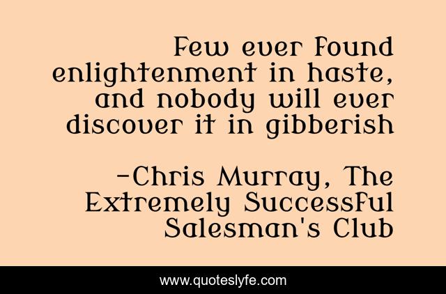 "Chris Murray, The Extremely Successful Salesman's Club Quotes." Quoteslyfe.com, 2025. Sun. 07 Dec. 2025. <https://www.quoteslyfe.com/quote/Few-ever-found-enlightenment-in-haste-and-117406>.