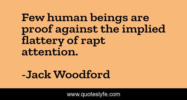 This page presents the quote "Few human beings are proof against the implied flattery of rapt attention.". Author of this quote is Jack Woodford. This quote is about flattery, praise,.