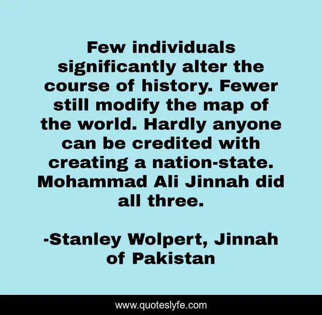 "Stanley Wolpert, Jinnah of Pakistan Quotes." Quoteslyfe.com, 2025. Fri. 05 Dec. 2025. <https://www.quoteslyfe.com/quote/Few-individuals-significantly-alter-the-course-of-70123>.