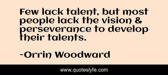 This page presents the quote "Few lack talent, but most people lack the vision & perseverance to develop their talents.". Author of this quote is Orrin Woodward. This quote is about perseverance, talent, vision,.