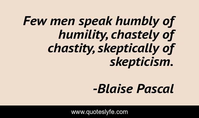 This page presents the quote "Few men speak humbly of humility, chastely of chastity, skeptically of skepticism.". Author of this quote is Blaise Pascal. .