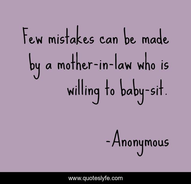 This page presents the quote "Few mistakes can be made by a mother-in-law who is willing to baby-sit.". Author of this quote is Anonymous. .