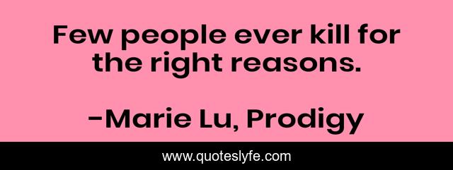 This page presents the quote "Few people ever kill for the right reasons.". Author of this quote is Marie Lu, Prodigy. This quote is about quote, life, death, kill,.