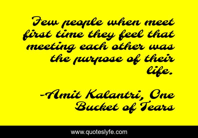 This page presents the quote "Few people when meet first time they feel that meeting each other was the purpose of their life.". Author of this quote is Amit Kalantri, One Bucket of Tears. This quote is about motivation, love, humans, couples, optimistic, human, true-love, confidence, positive,.