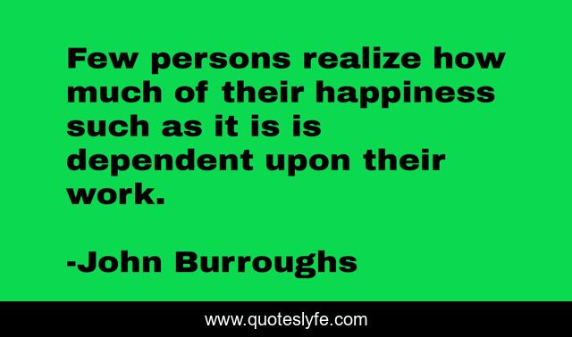 This page presents the quote "Few persons realize how much of their happiness such as it is is dependent upon their work.". Author of this quote is John Burroughs. .