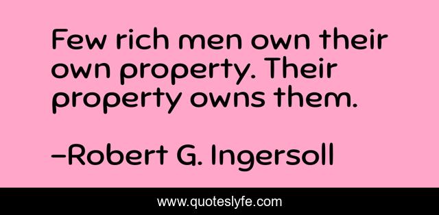 This page presents the quote "Few rich men own their own property. Their property owns them.". Author of this quote is Robert G. Ingersoll. .