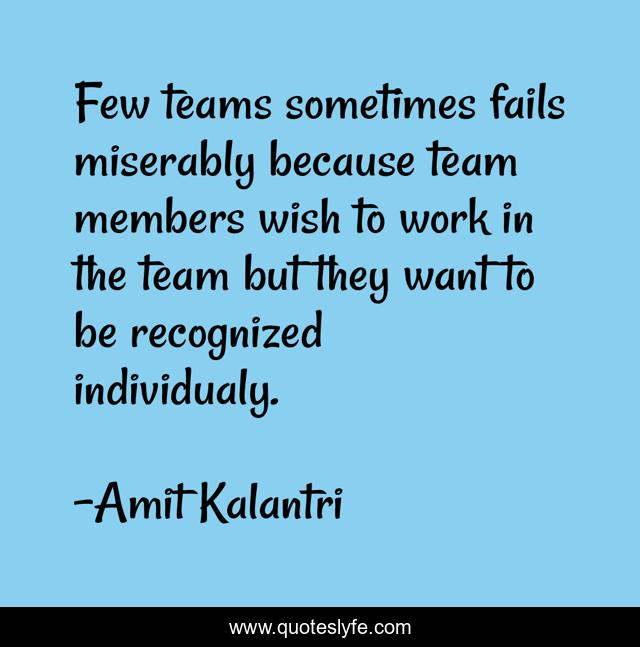 "Amit Kalantri Quotes." Quoteslyfe.com, 2025. Fri. 05 Dec. 2025. <https://www.quoteslyfe.com/quote/Few-teams-sometimes-fails-miserably-because-team-128858>.