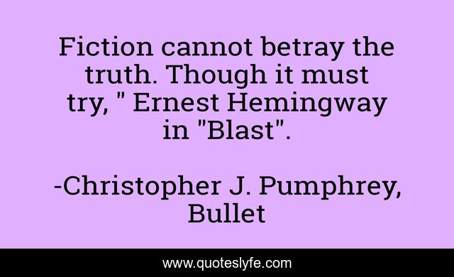 This page presents the quote "Fiction cannot betray the truth. Though it must try, " Ernest Hemingway in "Blast".". Author of this quote is Christopher J. Pumphrey, Bullet. This quote is about ernest-hemingway, bullet, fiction,.