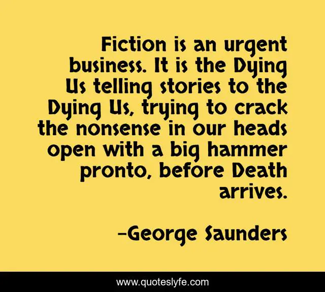 "George Saunders Quotes." Quoteslyfe.com, 2025. Fri. 05 Dec. 2025. <https://www.quoteslyfe.com/quote/Fiction-is-an-urgent-business-It-is-101288>.