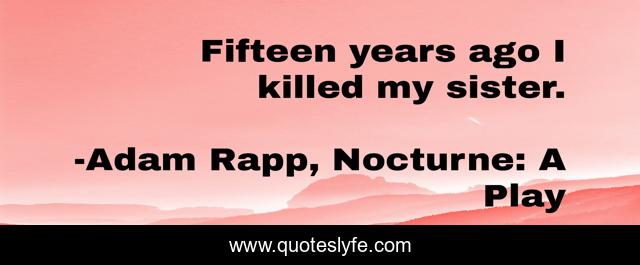 This page presents the quote "Fifteen years ago I killed my sister.". Author of this quote is Adam Rapp, Nocturne: A Play. This quote is about murder, accidental-death, first-sentence,.