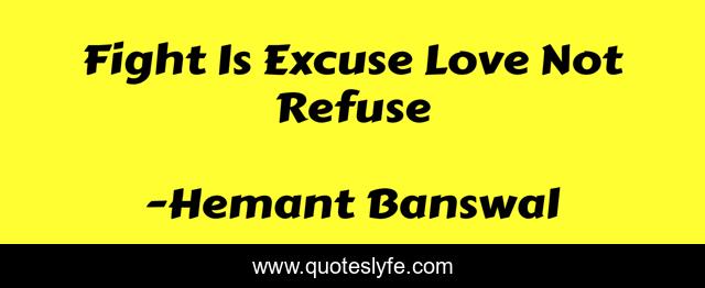 This page presents the quote "Fight Is Excuse Love Not Refuse". Author of this quote is Hemant Banswal. This quote is about excuses, refuse, love, affection, fight,.