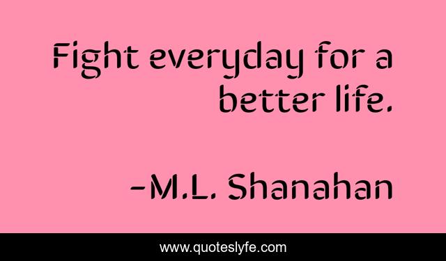 This page presents the quote "Fight everyday for a better life.". Author of this quote is M.L. Shanahan. This quote is about life, fighter, freedom, motivation, wisdom, goals, love, affection, inspiration,.