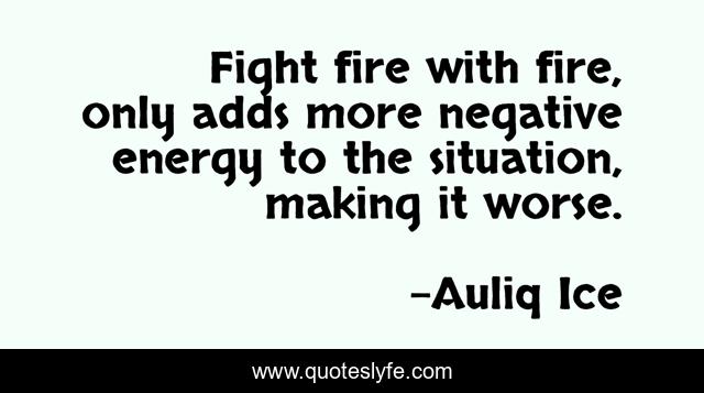 This page presents the quote "Fight fire with fire, only adds more negative energy to the situation, making it worse.". Author of this quote is Auliq Ice. This quote is about problem-solving, forgiveness, anger-management,.