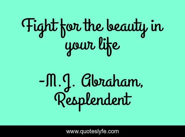 "M.J. Abraham, Resplendent Quotes." Quoteslyfe.com, 2025. Sat. 06 Dec. 2025. <https://www.quoteslyfe.com/quote/Fight-for-the-beauty-in-your-life-220446>.