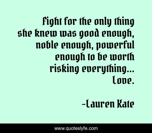 This page presents the quote "Fight for the only thing she knew was good enough, noble enough, powerful enough to be worth risking everything... Love.". Author of this quote is Lauren Kate. This quote is about love, affection,.