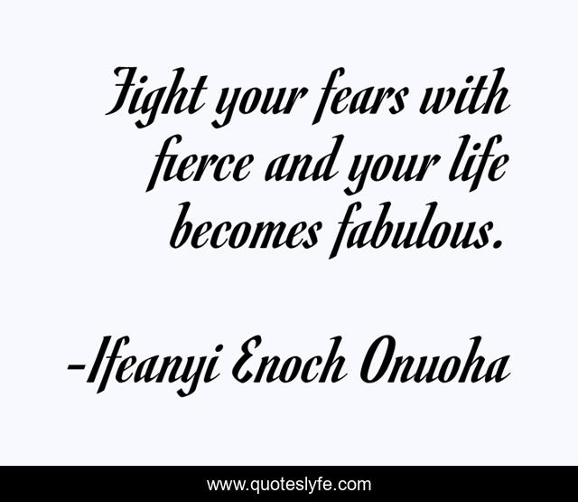 "Ifeanyi Enoch Onuoha Quotes." Quoteslyfe.com, 2025. Sat. 06 Dec. 2025. <https://www.quoteslyfe.com/quote/Fight-your-fears-with-fierce-and-your-90580>.