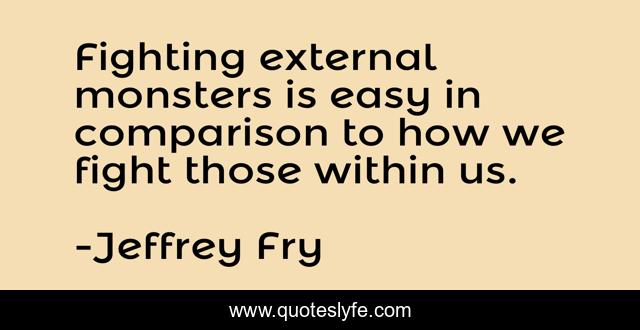 This page presents the quote "Fighting external monsters is easy in comparison to how we fight those within us.". Author of this quote is Jeffrey Fry. This quote is about comparison, fighting, fight, external, easy, within-us, monsters,.