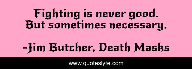 This page presents the quote "Fighting is never good. But sometimes necessary.". Author of this quote is Jim Butcher, Death Masks. .