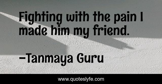 This page presents the quote "Fighting with the pain I made him my friend.". Author of this quote is Tanmaya Guru. .